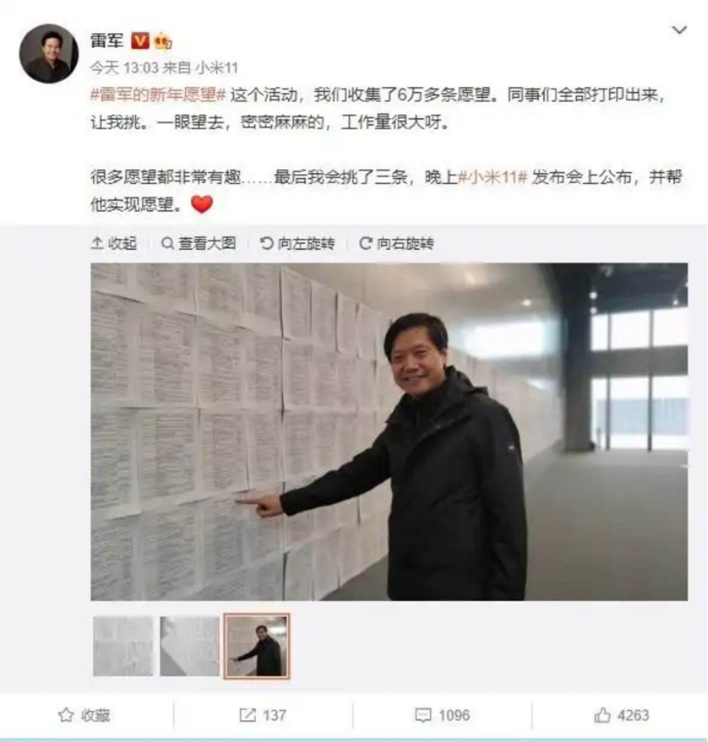 当雷军及小米持续以“问题解决者”的身份出现在公众视野时,也就不难理解为什么雷军评论区成为网友的许愿池了。在消费者心中,雷军已经成为期待载体。