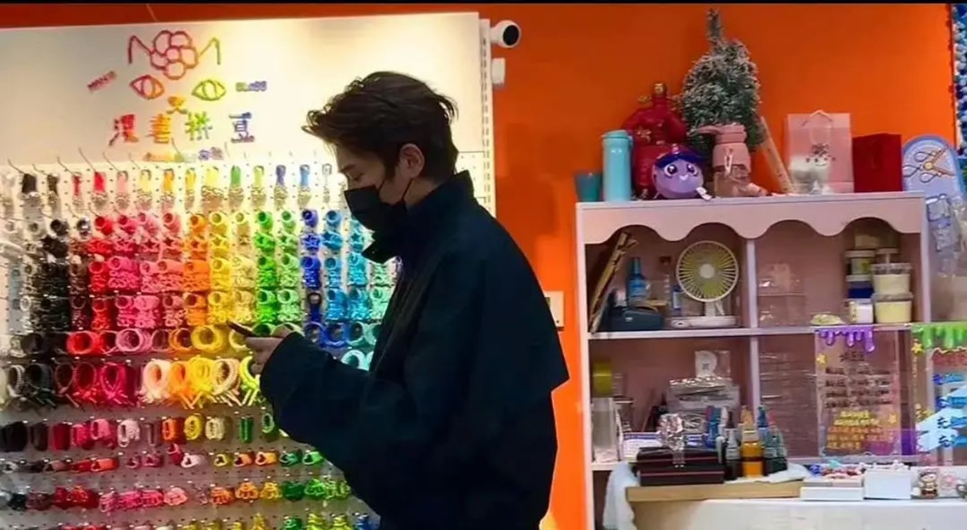 丁禹兮在拼豆店拼拼豆