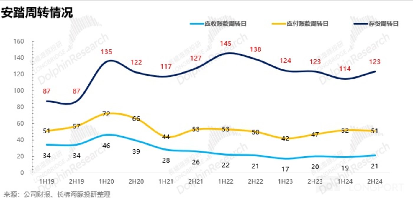 最后,从周转天数上看,24H2 公司存货周转天数为 123 天,同比持平,相较于 2023 年下半年的经济环境,在 2024 年消费力走低的情况下公司通过牺牲毛销差维持住了周转率,后续还需重点观察毛销差恢复对周转率的影响。