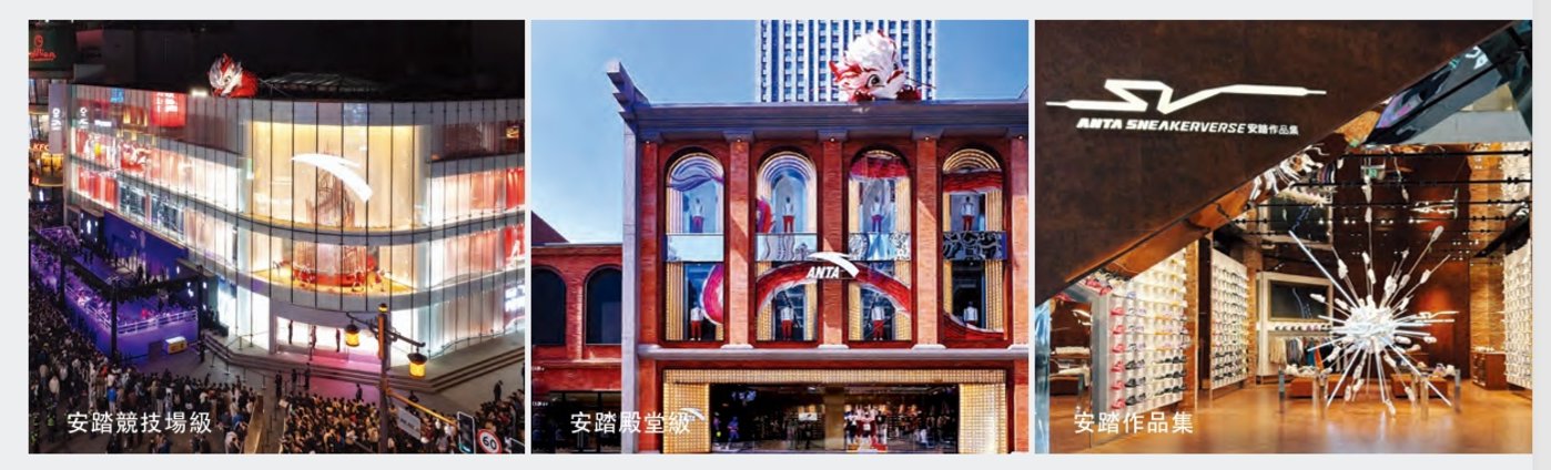 一方面,通过殿堂级、竞技场级等新店铺形象成功打入高端商圈,提升品牌形象。另一方面,针对垂类细分市场,通过安踏冠军(户外场景)、安踏作品集(中高端潮鞋)等店铺满足细分人群的特定需求。