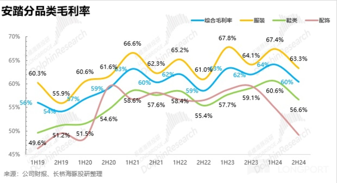从品类上看,24H2 公司的鞋类、服装、配饰均保持了双位数以上的增长,从全年维度看,鞋类增长更快,一方面系上半年推出的平价高科技 PG7 跑鞋通过在超级安踏、安踏冠军等新店型中重点陈列,提升曝光度,在下半年放量高增,吸引了大量价格敏感型的消费者,成为爆款单品,