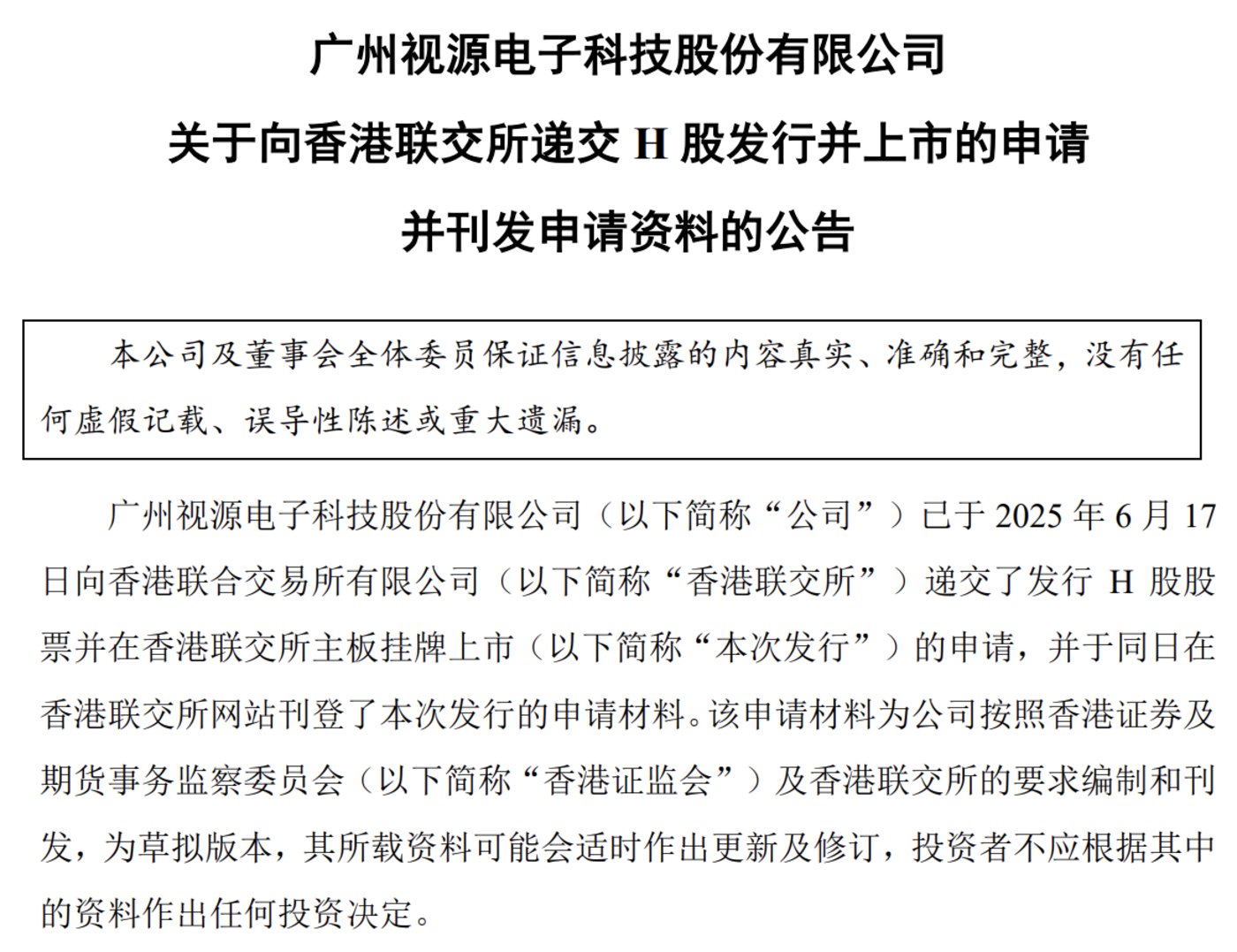 不过,最近视源股份也传出了港股上市的相关消息,根据视源股份6月18日发布的公告,公司已于6月17日向香港联交所递交了发行H股股票并在联交所主板挂牌上市的申请,并于同日在香港联交所网站刊登了本次发行的申请材料。