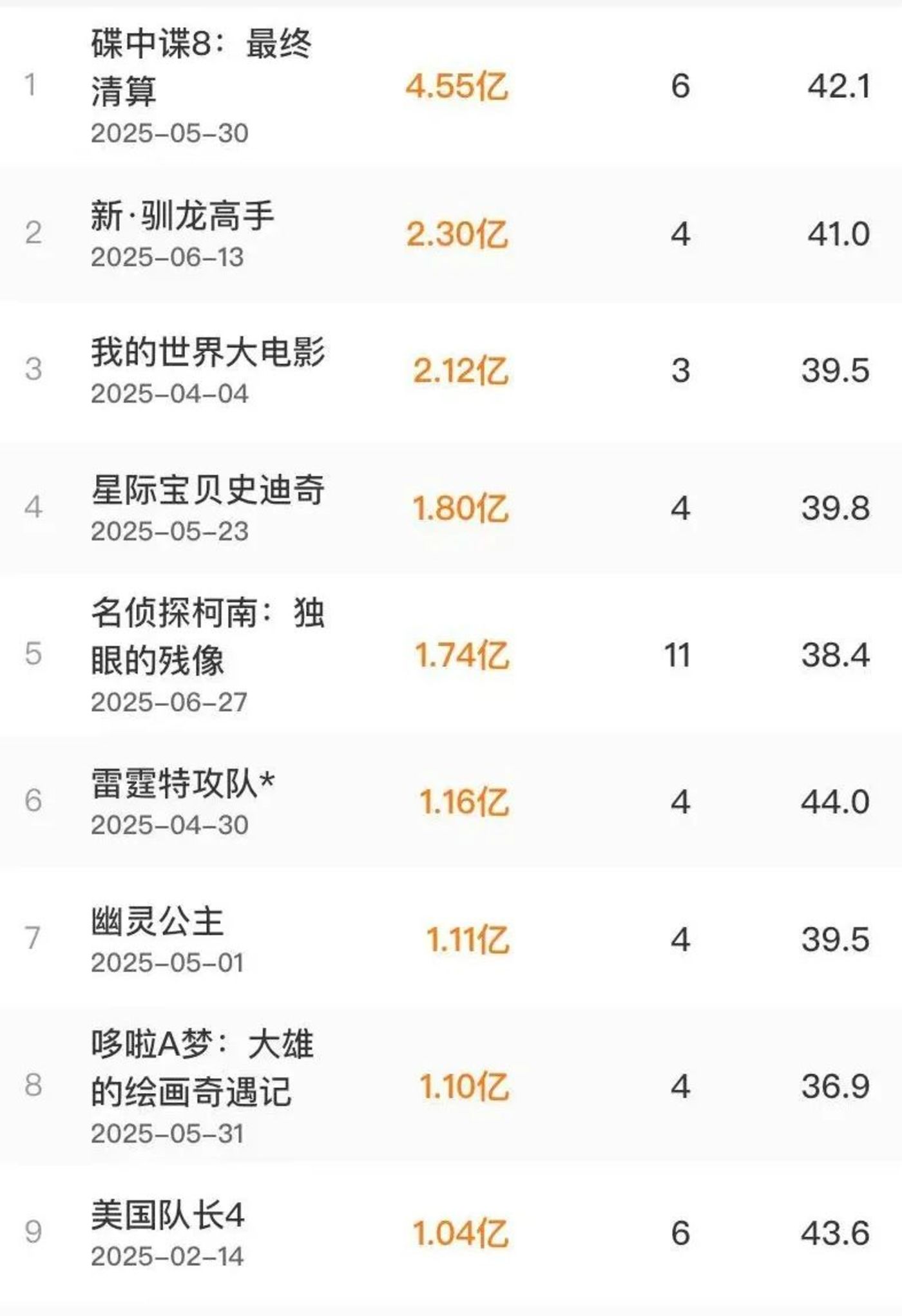 《酱园弄·悬案》随着新片上映只能止步于4亿左右,翻身无望。虽然《F1:狂飙飞车》已经掀起口碑风暴,《名侦探柯南:独眼的残像》剑指系列票房新高,但二者依然能量有限,难抵5亿大关。