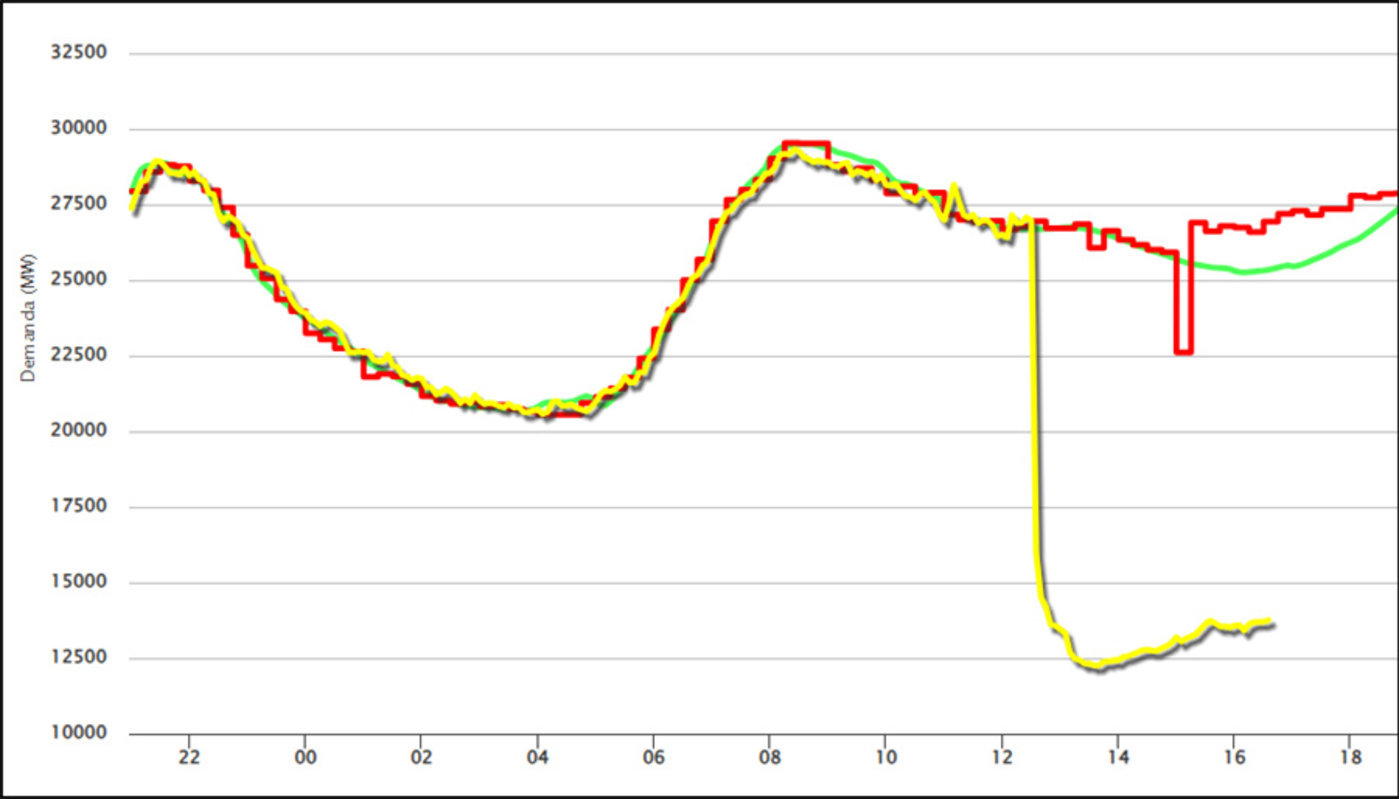 西班牙电网运营商RedEléctrica的数据显示,西班牙电网负荷突然骤降超过1000万千瓦