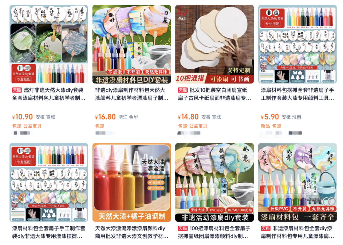 许多景区打着“非遗漆扇”招牌的摊位,实际卖的是水转印团扇,和非遗没有任何关系。而在景区宣传和媒体报道中,这种水转印团扇经常被冠以“非遗体验”的名号。