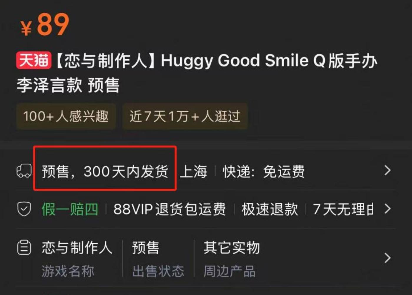 另一方面,厂商开始备现货了。比如叠纸与X11合作的盲盒,6月1日上线首发,拍下即发货,手速快的玩家在第二天就可以享受拆盒的快乐。没赶上现货的人也不用等太久,1-2周即发货,比起过去一等半年快太多了。
