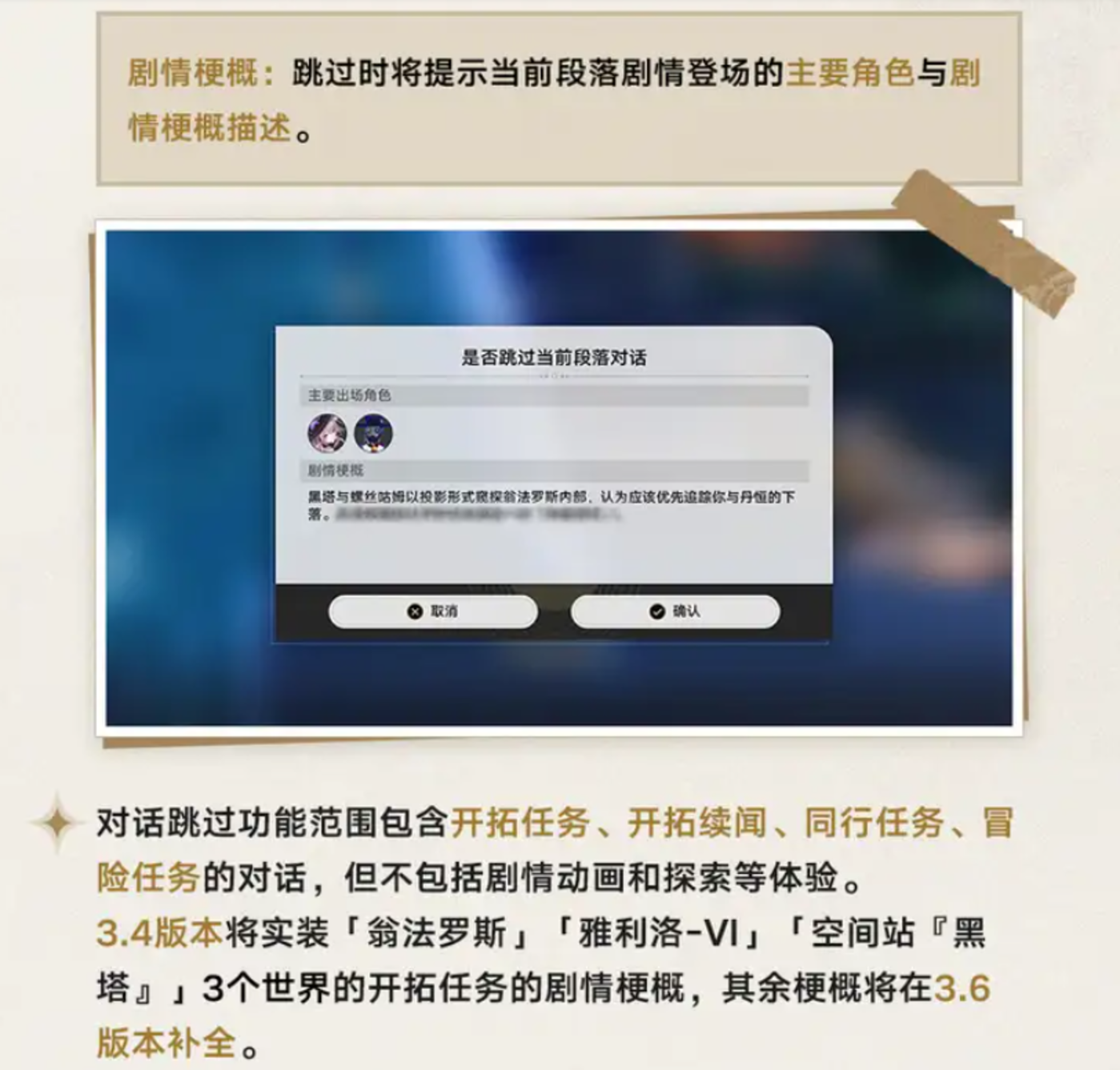 《原神》和《崩铁》在这几年一直有玩家提出加入“剧情跳过”按钮的呼吁,甚至还分裂出了“剧情党”与“跳过党”两大群体互相攻讦。直到《崩铁》上个月版本前瞻时,明确表示将加入“剧情跳过”按钮,一时间有人欢喜有人悲,“剧情党”的真心终究还是错付了。
