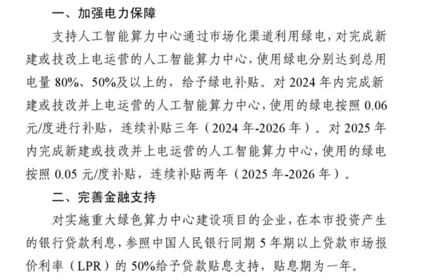 2024年1月,青海在全国率先发布了《绿色算力基础设施等级评定规范》等5项绿色算力地方标准。新疆多个地区也出台了一系列的政策和举措,助力绿色算力发展。比如克拉玛依市于 2025 年出台相关政策,从电力保障、金融支持、设施投入、算力协同等 10 个方面给予算力产业全方位政策扶持,其中,明确规定,对完成新建或技改上电运营的人工智能算力中心,使用绿电分别达到总用电量 80%、50% 及以上的,给予绿电补贴。