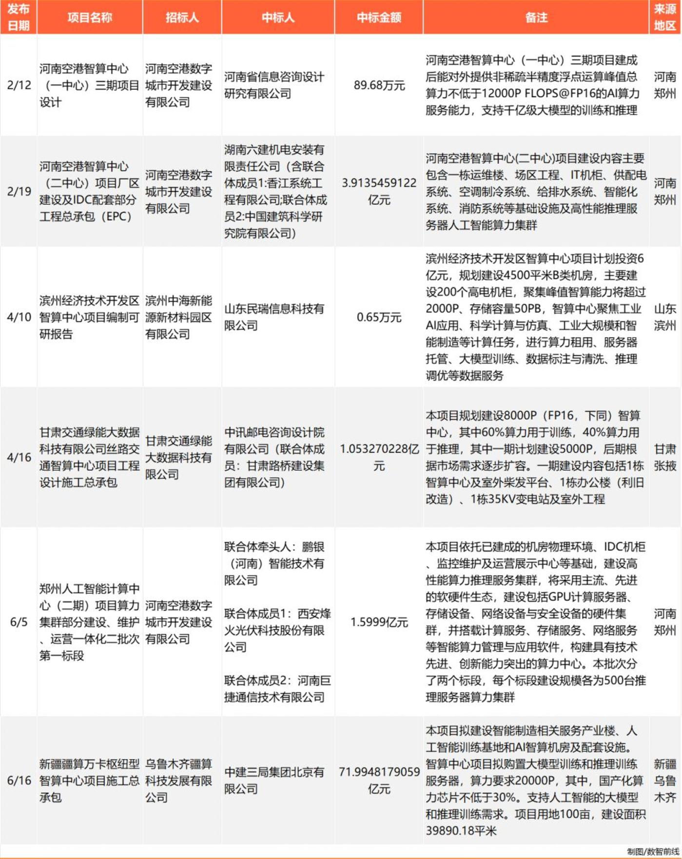 最近,数智前线通过中国政府采购网、中国招投标公共服务平台、天眼查、企查查、寻标宝等渠道梳理发现,2025年上半年的公开招投标市场上,围绕土建基础设施和IT基础架构等方方面面的建设内容,国内智算中心相关项目中标公告已发布超393个。在这些项目中,我们看到了一些值得关注的趋势和特征: