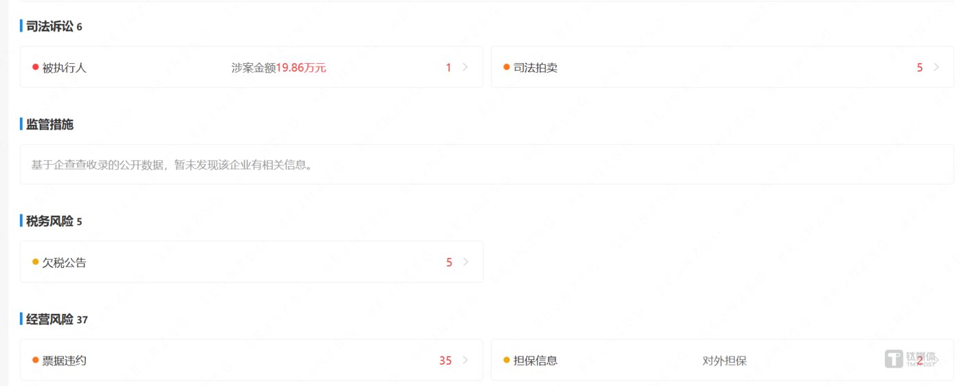 珍珠红酒业共有8条自身风险,其中欠税公告1条,累计欠税余额高达1672万元,动产抵押4条,涉及债权数额合计为6.6亿元。