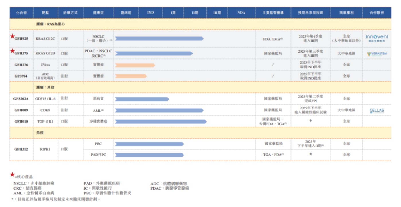 招股书显示,截至2025年6月20日,劲方医药已建立的产品管线包括8款候选药品,其中5款处于临床开发阶段;核心产品除了GFH925,还有GFH375这款药物比较受关注,同样具有不小的竞争力——“全球最先进的口服生物可利用KRAS G12D抑制剂之一”。