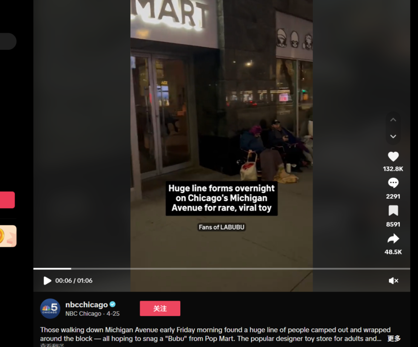 泡泡玛特芝加哥门店外,人群排队等待营业