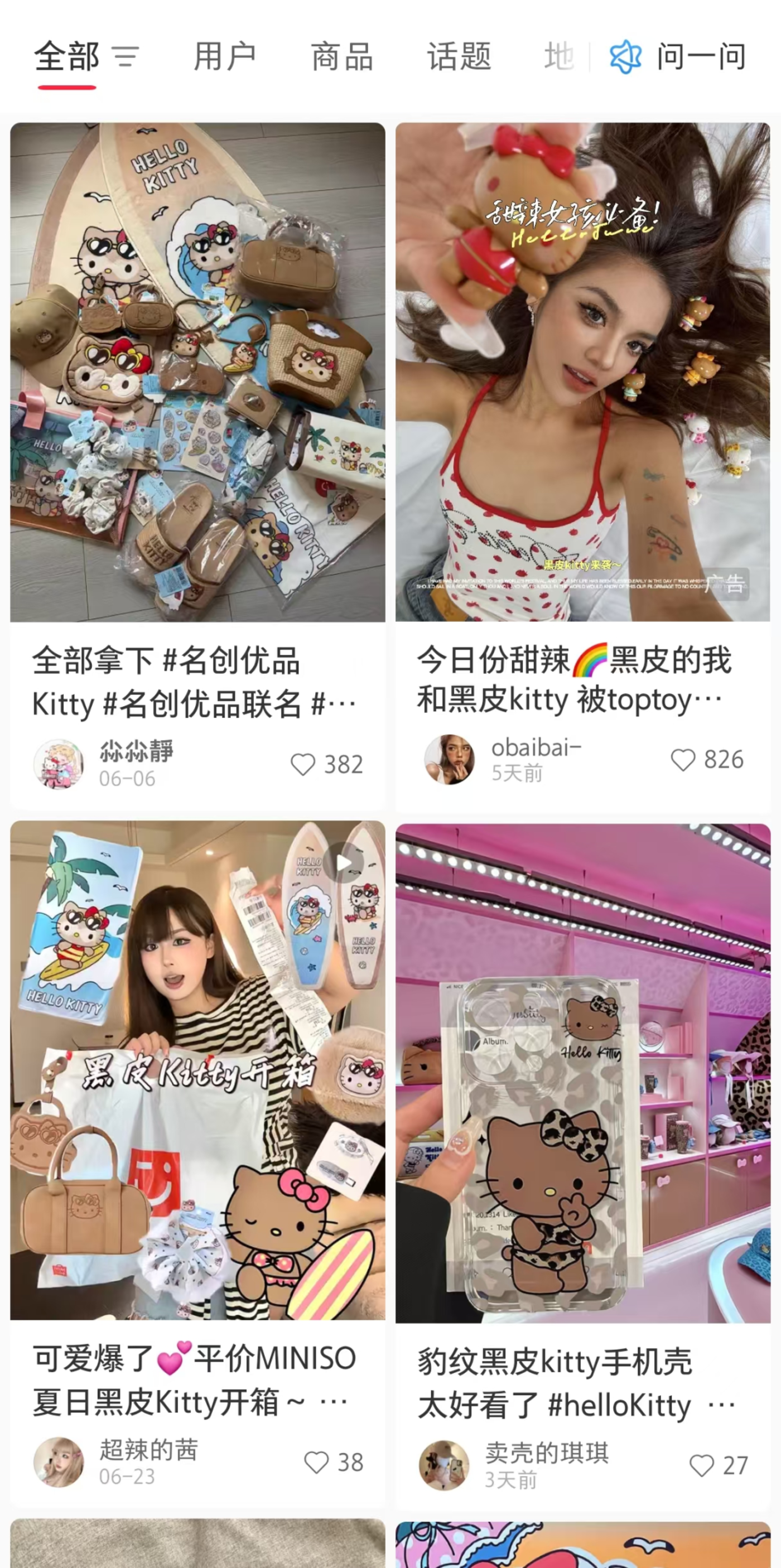 类似的,黑皮Kitty在大众维度的话题发酵最初也有明星的带动。其最初在虞书欣、赵露思等人气女明星和韩国女团成员的街拍中作为包挂受到讨论。此后,在微博之夜、时尚芭莎等活动中,夏威夷出生的米卡将黑皮Kitty作为礼物赠送其他明星,进一步扩大了话题影响力。近期野兽派与黑皮Kitty的联名,代言人宋雨琦也身着豹纹Kitty家居服参与了活动直播。