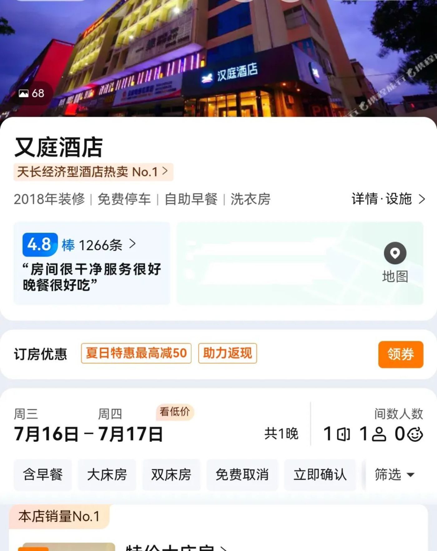 天长市一个名叫“又庭酒店”的门店,近日出现在携程平台上。这个拥有99间客房的经济型酒店,一度在当地占据热卖榜单之首。