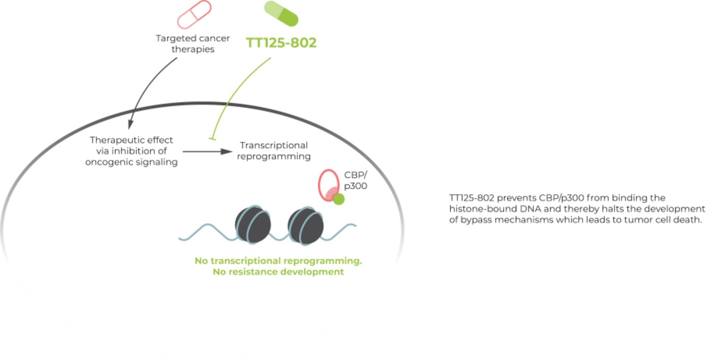 瑞士生物科技公司Tolremo Therapeutics(以下简称Tolremo)成立于2017年,公司致力于研发CBP/p300 溴结构域抑制剂。该抑制剂通过靶向转录细胞,阻断癌症耐药性转录通路,抑制非遗传性癌症产生耐药性。