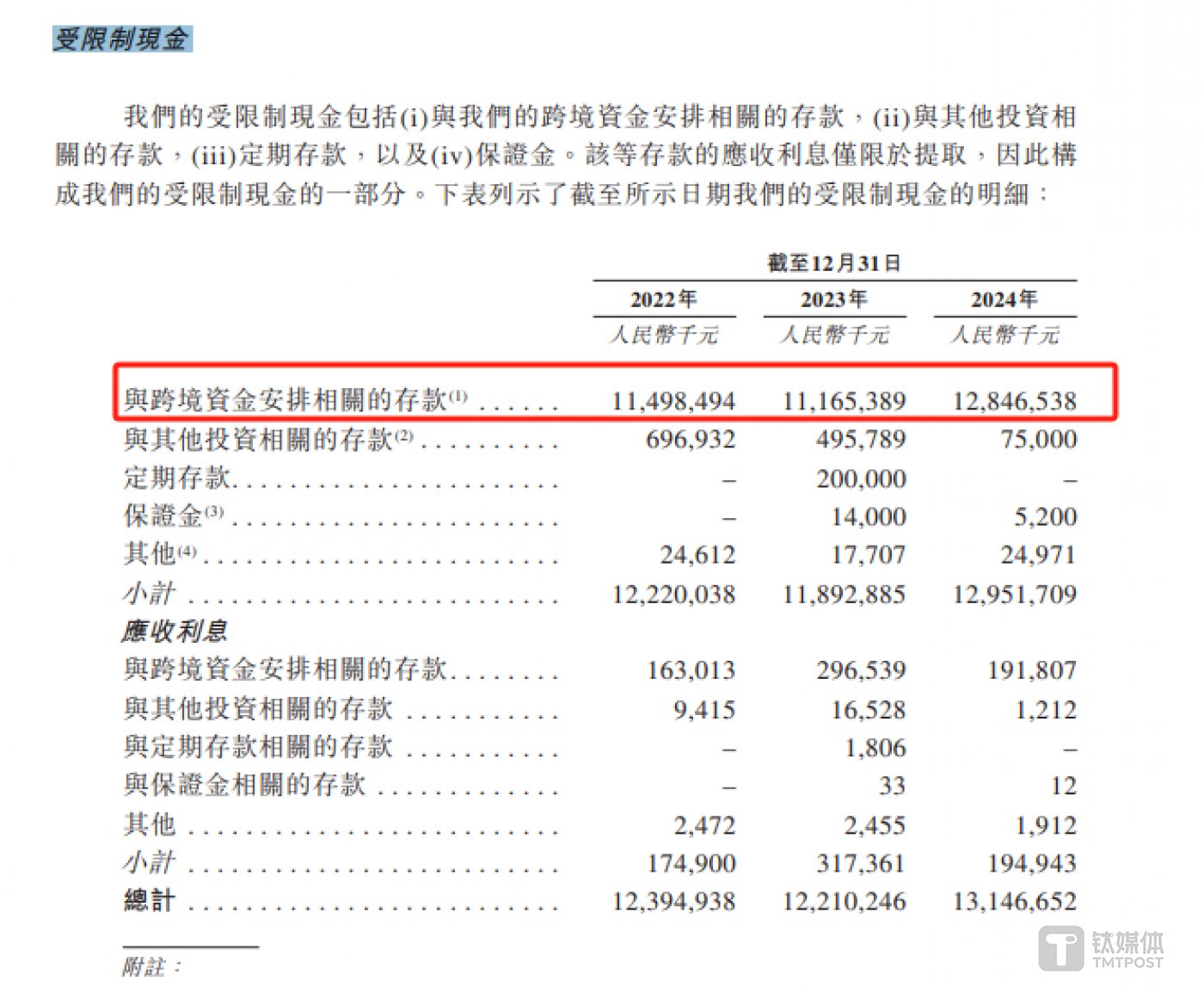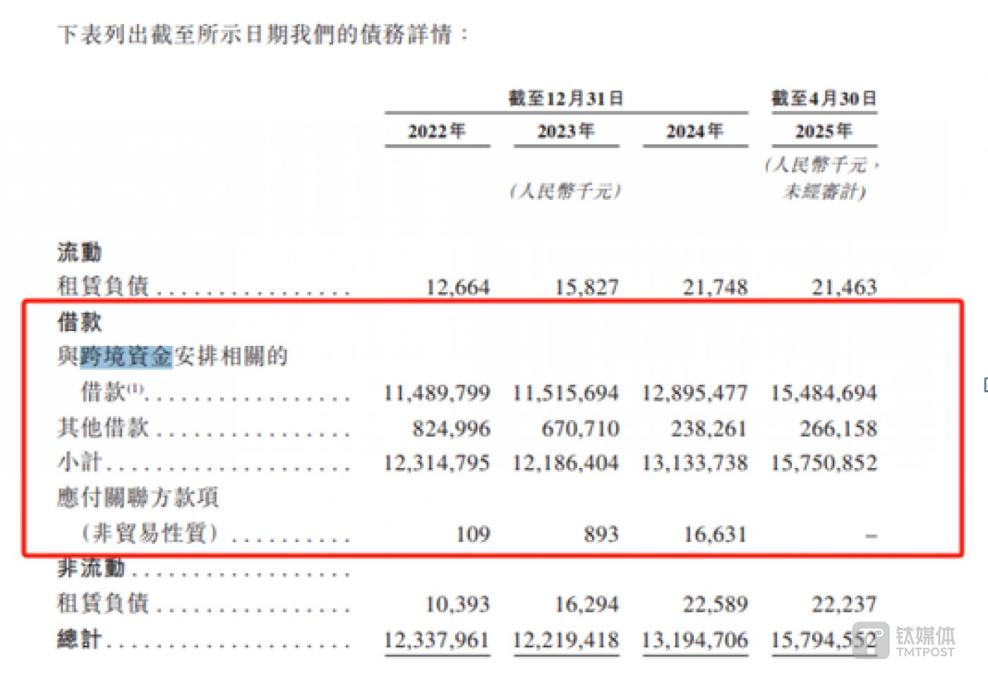 特别要说明的是,华富洋的流动负债中借款金额分别为123.15亿元、121.86亿元、131.34亿元,其中与跨境资金安排相关的借款分别为114.9亿元、115.16亿元、128.95亿元,与上述受限制现金中的与跨境资金安排相关的存款相差不大,这意味着华富洋并非依靠自有资金,而是通过大额举债支撑跨境资金安排业务运转。(本文首发于钛媒体 APP,作者|邓皓天)