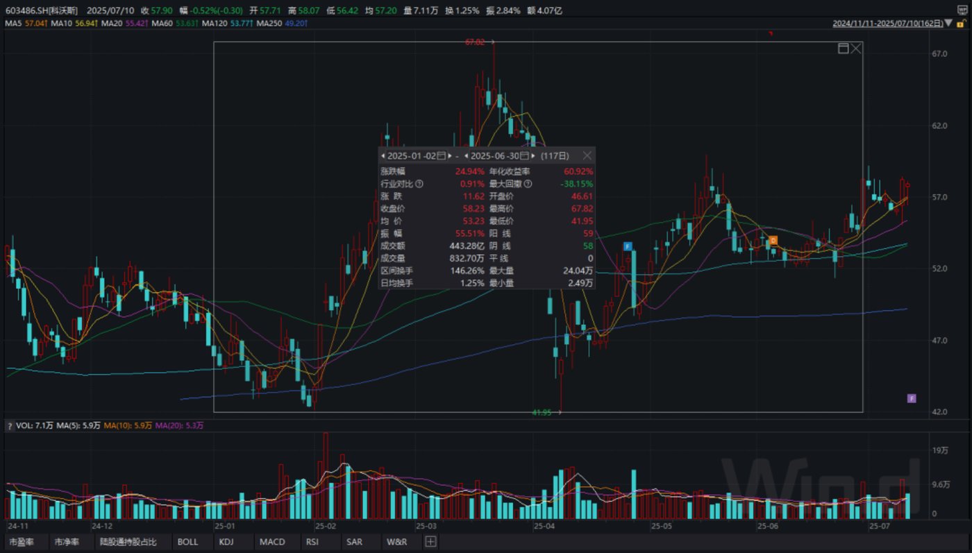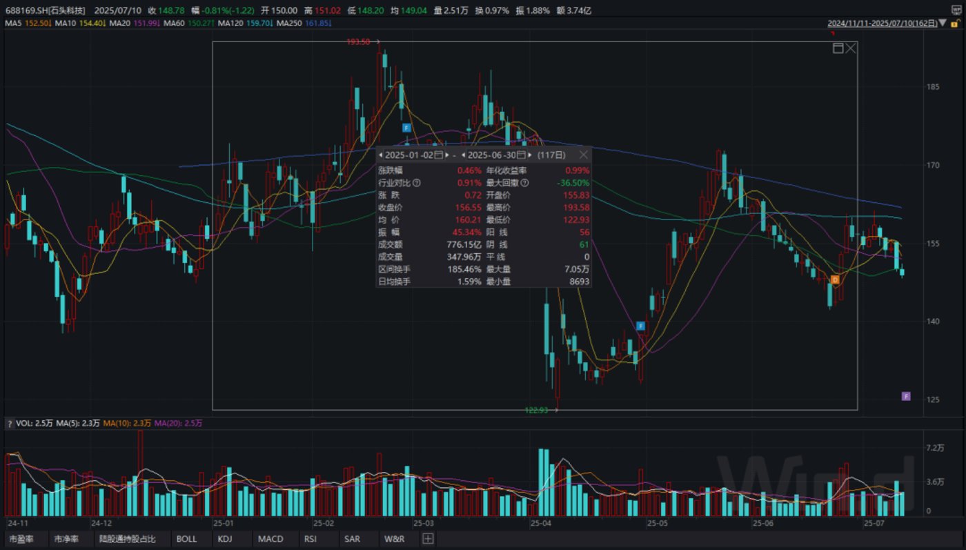 从股价层面来看,wind数据显示,今年上半年(1月2日至6月30日),石头科技以及科沃斯的股价涨跌幅分别为0.46%、24.94%。