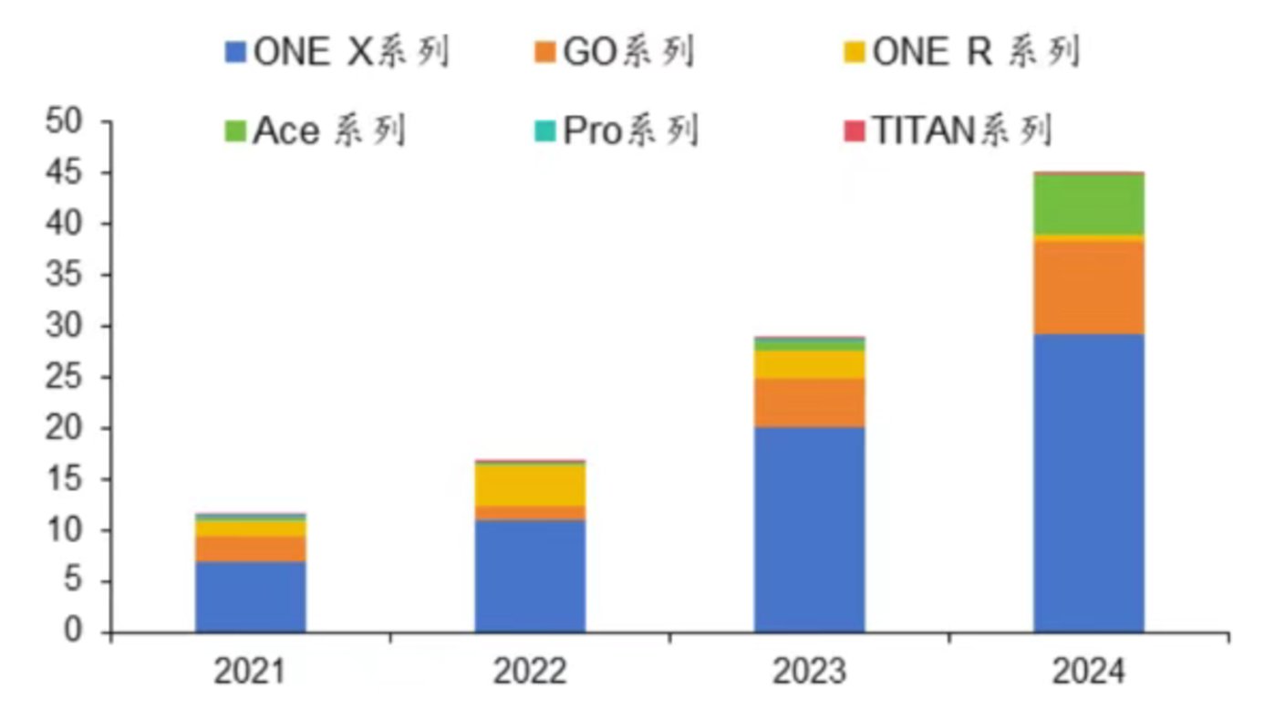 不过让影石名声大噪的,还是户外运动在社媒上的蓬勃发展。其中,消费级产品主要包括 ONE X全景相机、Ace运动相机、GO可穿戴运动相机、ONE R全景相机/模块化运动相机、Flow手机云台等七大系列,其中ONE X系列是销量主力。2024年,消费级产品贡献了高达86.59%的营收占比。