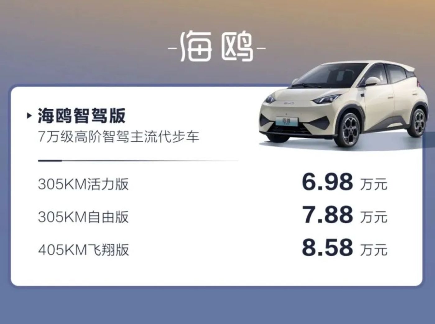 海鸥智驾版价格区间,图源比亚迪官方微信公众号