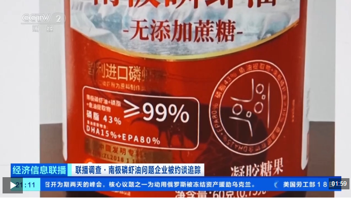 此前,上海市消保委约谈涉事“南极磷虾油”产品企业,引发社会关注。上海市消保委对市场上销售的15款南极磷虾油产品开展了比较试验,结果显示,部分产品存在成分含量与宣传严重不符的情况。经销商北京同仁堂(四川)健康药业有限公司向安徽哈博药业有限公司定制采购的南极磷虾油价格为每瓶3.7元,而终端销售价格每瓶60多元。记者独家获取了约谈视频。