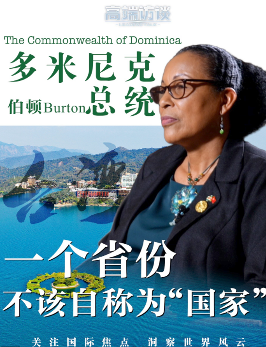 近日,多米尼克总统伯顿接受总台《高端访谈》栏目专访时表示:我们坚信世界上只有一个中国。中国应该实现统一,因为本来就是一个国家。一个省份不应自以为是一个“国家”,并对抗自己的祖国。因此,我们始终坚定支持中国的立场,支持中国实现完全统一。