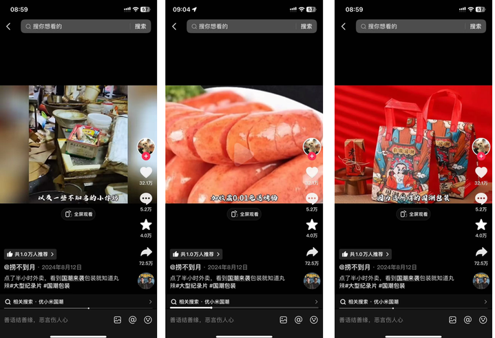 除“国潮外卖”和“拼好饭”低价外卖外,正常外卖店内的卫生情况同样堪忧。抖音千万粉丝博主@周小闹曾出过“外卖员的内心活动”系列视频。这些视频中,先炸后烤的烤串撒上烧烤料、包上锡纸,消费者很难发现;使用边角肉料、冷冻饺子馅和饺子皮制作的“现包馅蒸”包子,仍能跻身外卖销量榜。