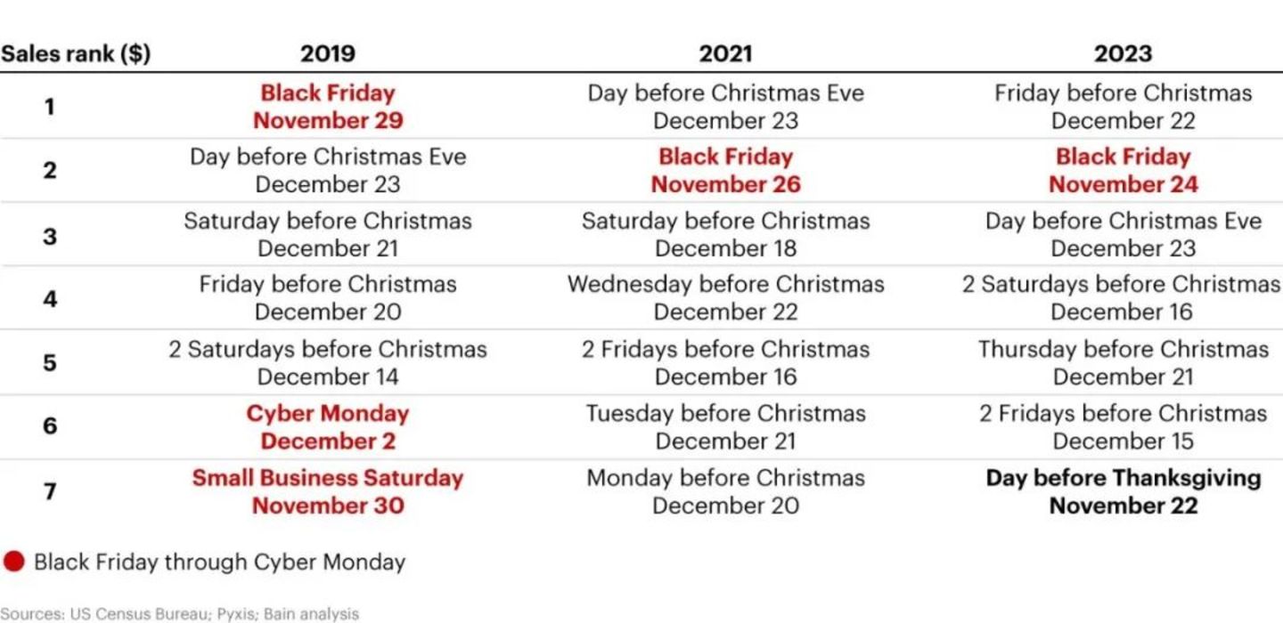 贝恩咨询公司预测,今年的黑色星期五到网络星期一期间,美国零售额预计将同比增长 5%,总销售额将达到 750 亿美元,创下美国假日季销售的新纪录。贝恩同时指出,假日销售额中约有 8% 将来自黑色星期五和网络星期一之间的关键周末,这个时间段紧接在速卖通的双十一之后。
