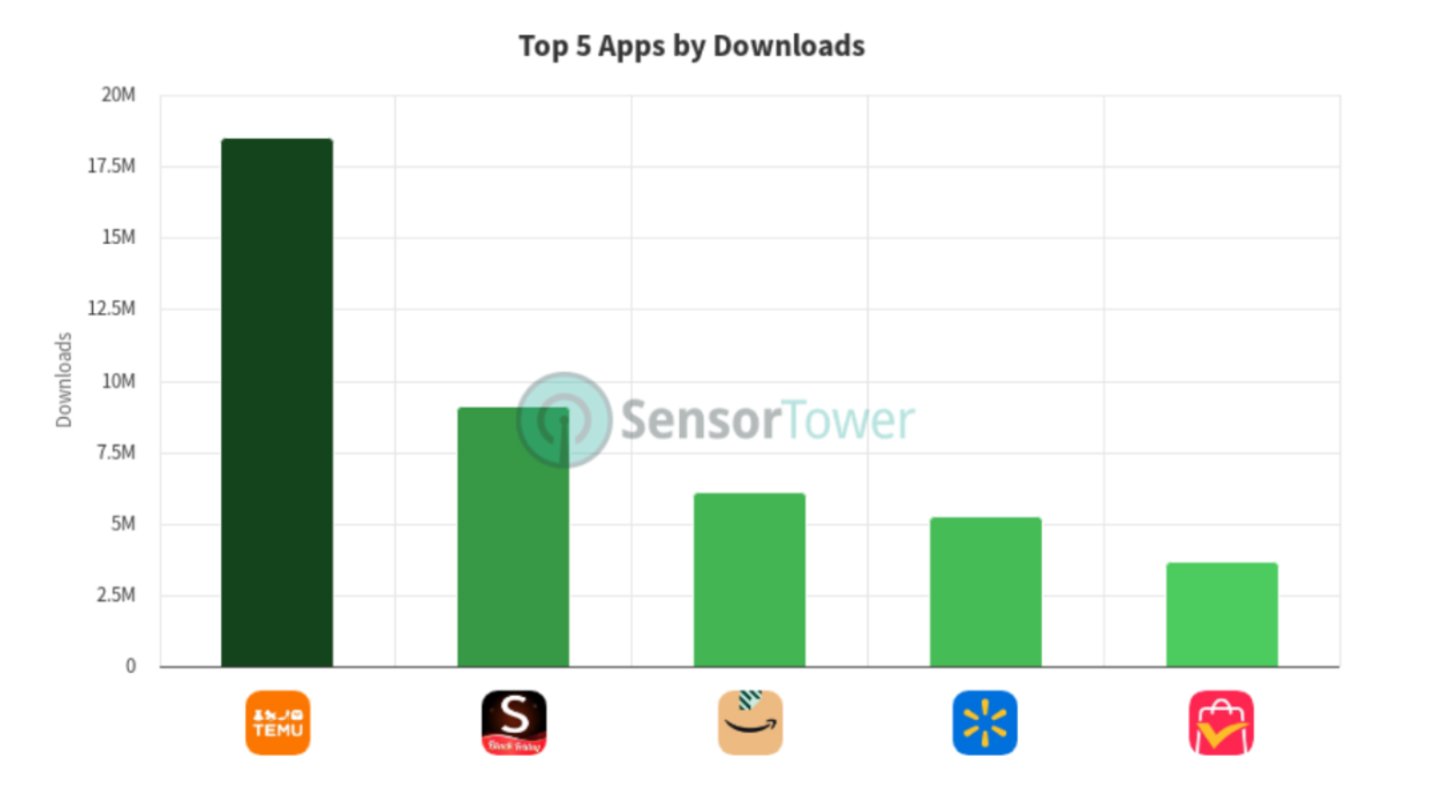 (2024 年第 3 季度美国下载量排名前五的购物应用;来源:Sensor Tower)