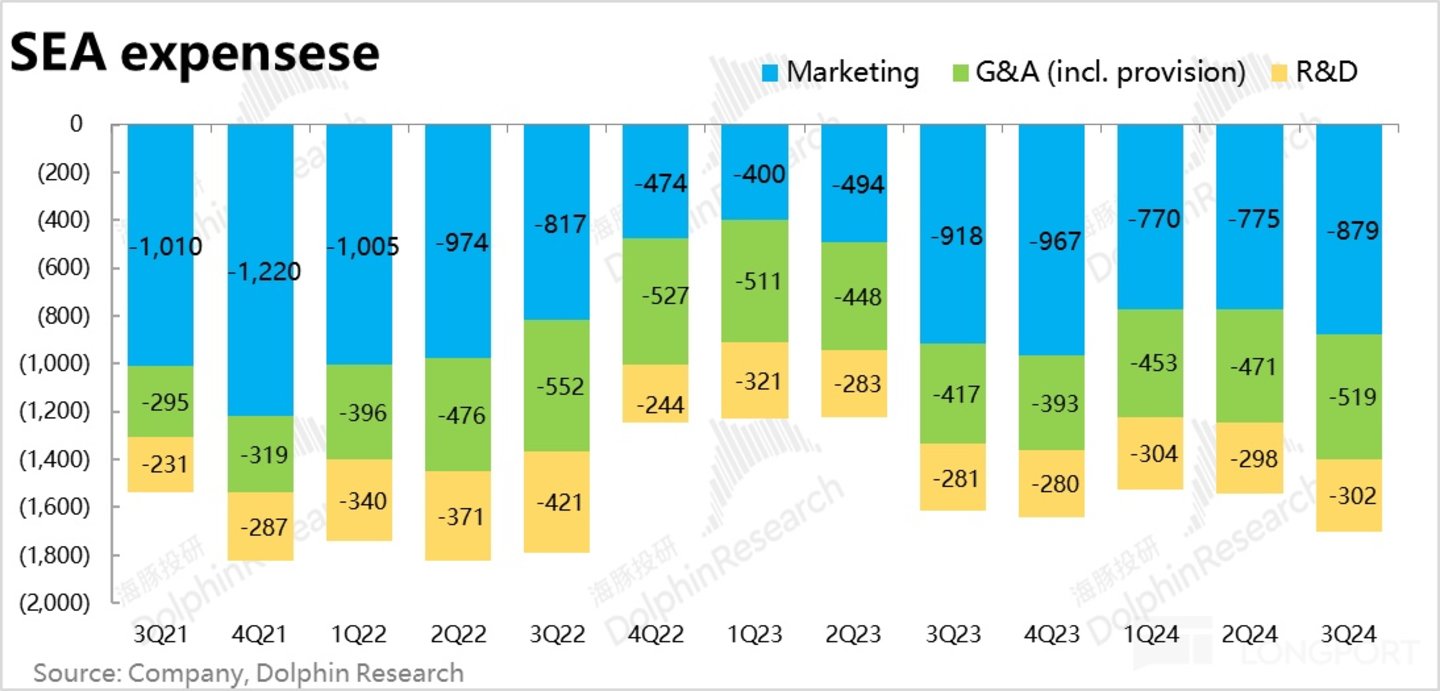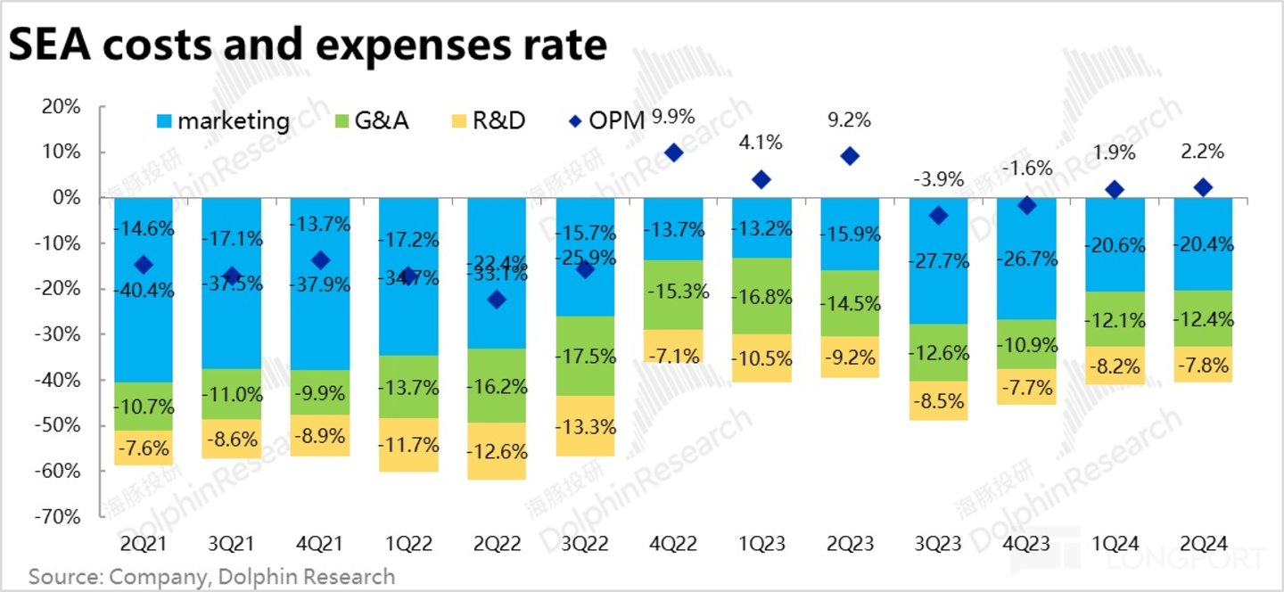 且值得注意,本季度的Shopee 业务的营销费用支出额(占总体营销支出的约 87%)不增反降了约 4%。