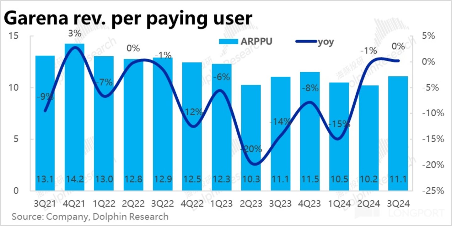 但越过预期差,本季的用户数量同比仍是明显增长的,且单付费用户贡献流水也同比止跌,企稳在了$11.1。因此,关键的游戏流水本季同比增长了 24%,较上季提速 3pct,反而是稍高于市场预期的。