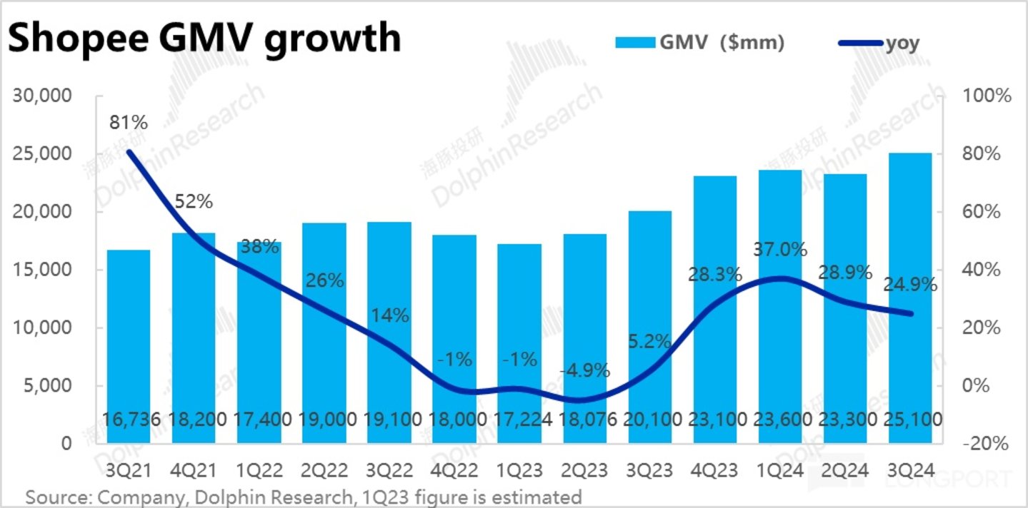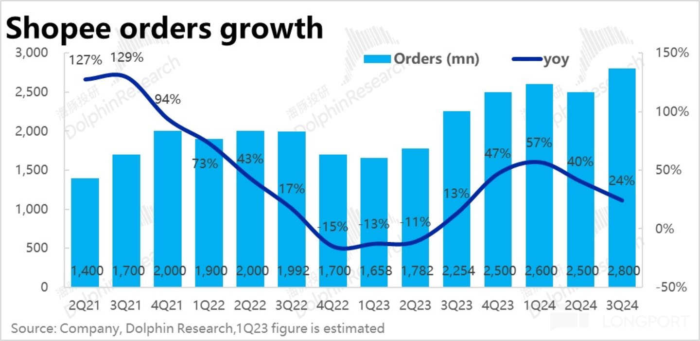 1、关键的 Shopee 电商板块,本季GMV 达 241 亿,同比增长近 25%,明显好于市场预期 22% 的同比增速。且趋势上,环比上季增速下降了约 4pct,考虑到基数走高影响,基本可以视作没有放缓。 结合公司对 24 全年 GMV 增长 “mid-twenties” 的指引,我们取上限 27%,隐含 4Q 的 GMV 增速约 20%,考虑到去年 4Q 时 GMV 增长已明显修复,指引也算不俗。