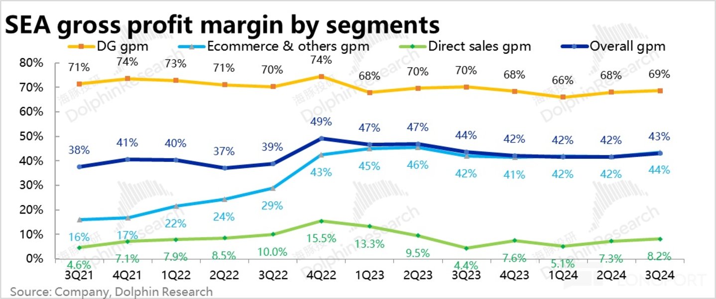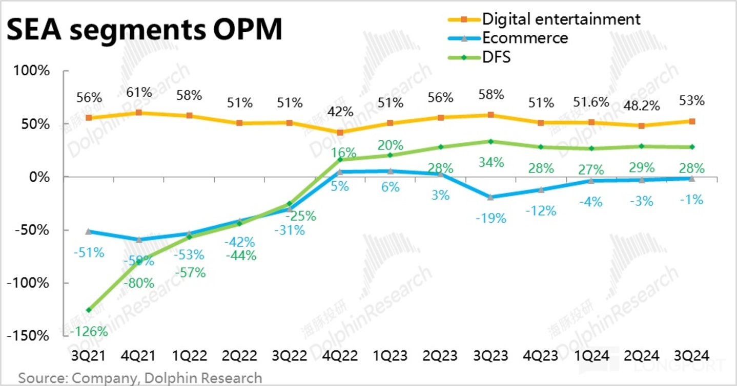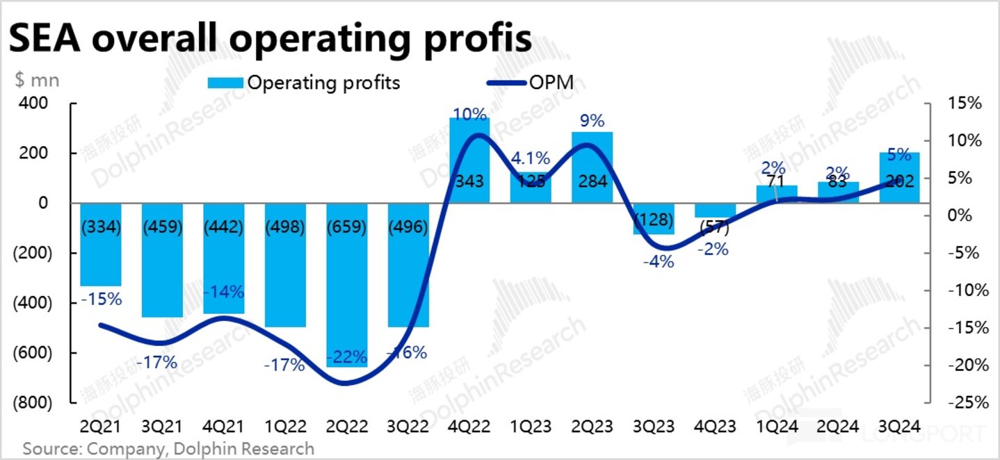 由于费用支出也在更高的收入增长下被动摊薄,最终 Sea 本季的经营利润达到$2 亿,远超预期的 1.6 亿,经营利润率到达 5%。