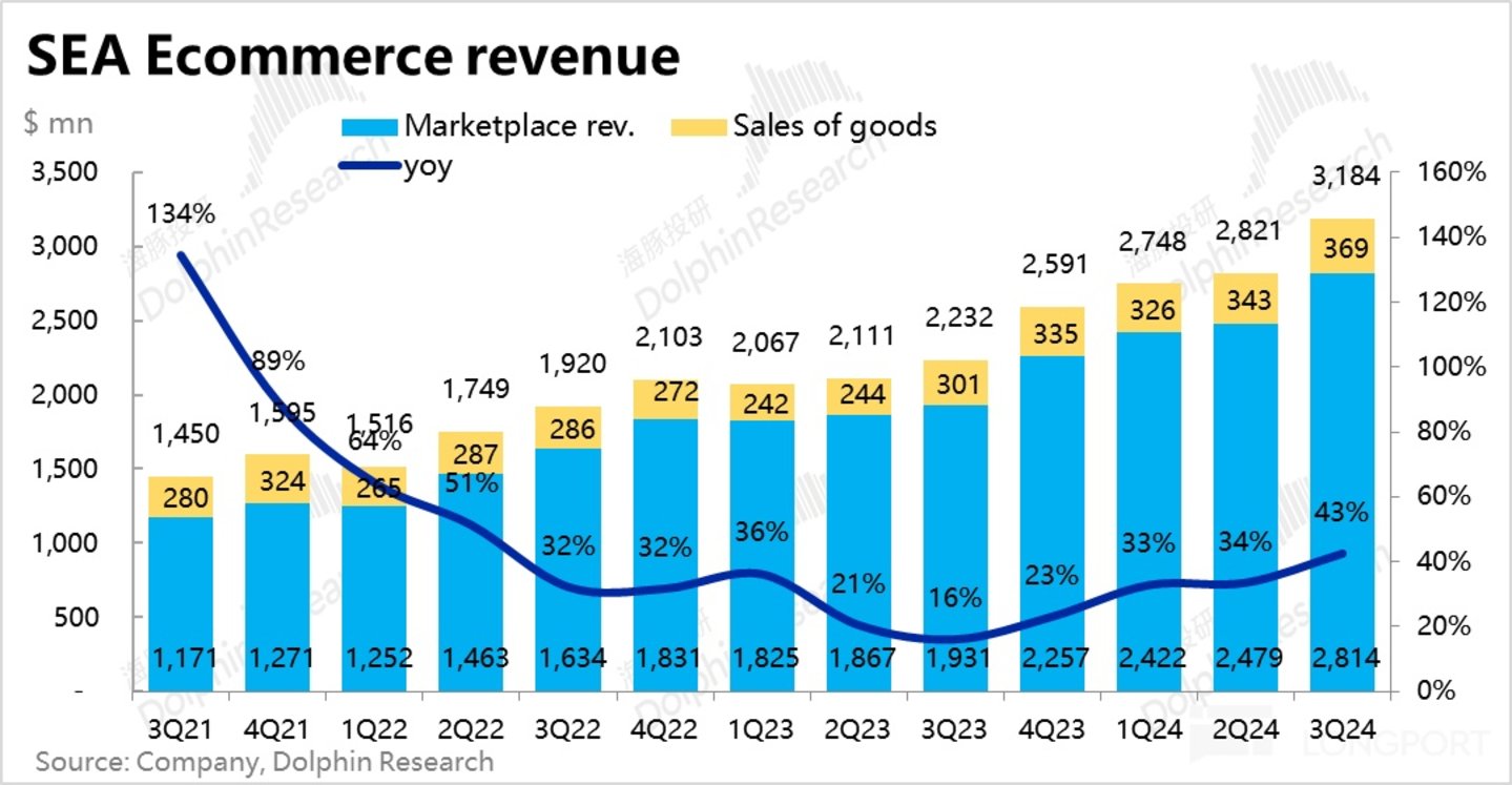 收入层面,本季 Shopee 营收同比增速高达 43%,明显跑赢 GMV 增速。且相比上季,营收增长加速了整整 9pct,可谓强劲。