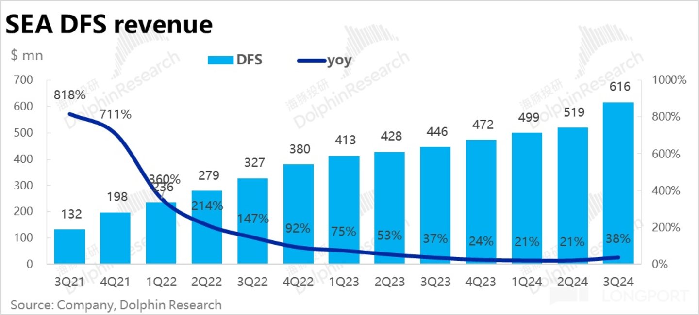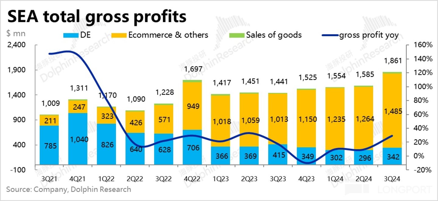 首先最关键的 Shopee 电商板块,本季GMV 达 241 亿,同比增长近 25%,明显好于市场预期 22% 的同比增速。且趋势上,环比上季增速仅下降了约 4pct。再考虑到基数走高的影响,可以说增长基本没有放缓的迹象。结合公司对 24 全年 GMV 增长 “mid-twenties” 的指引,我们取上限 27%,则隐含 4Q 的 GMV 增速约 20%,考虑到去年 4Q 基数已明显拉高,仍算不俗的增长指引。