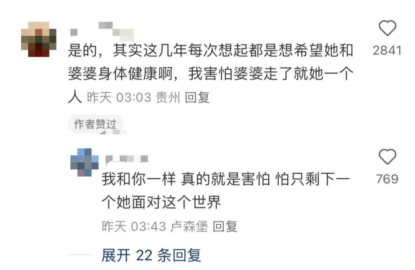就连大家挂念的婆婆也如期出现在视频中,“真好,婆婆还在”,很多人在婆婆出镜的那一刻湿了眼眶。