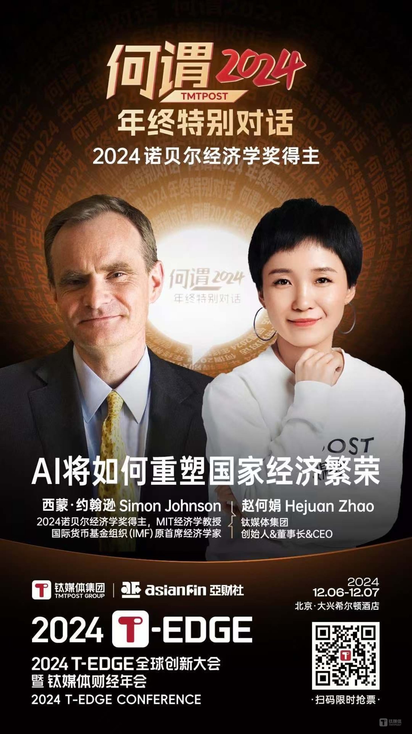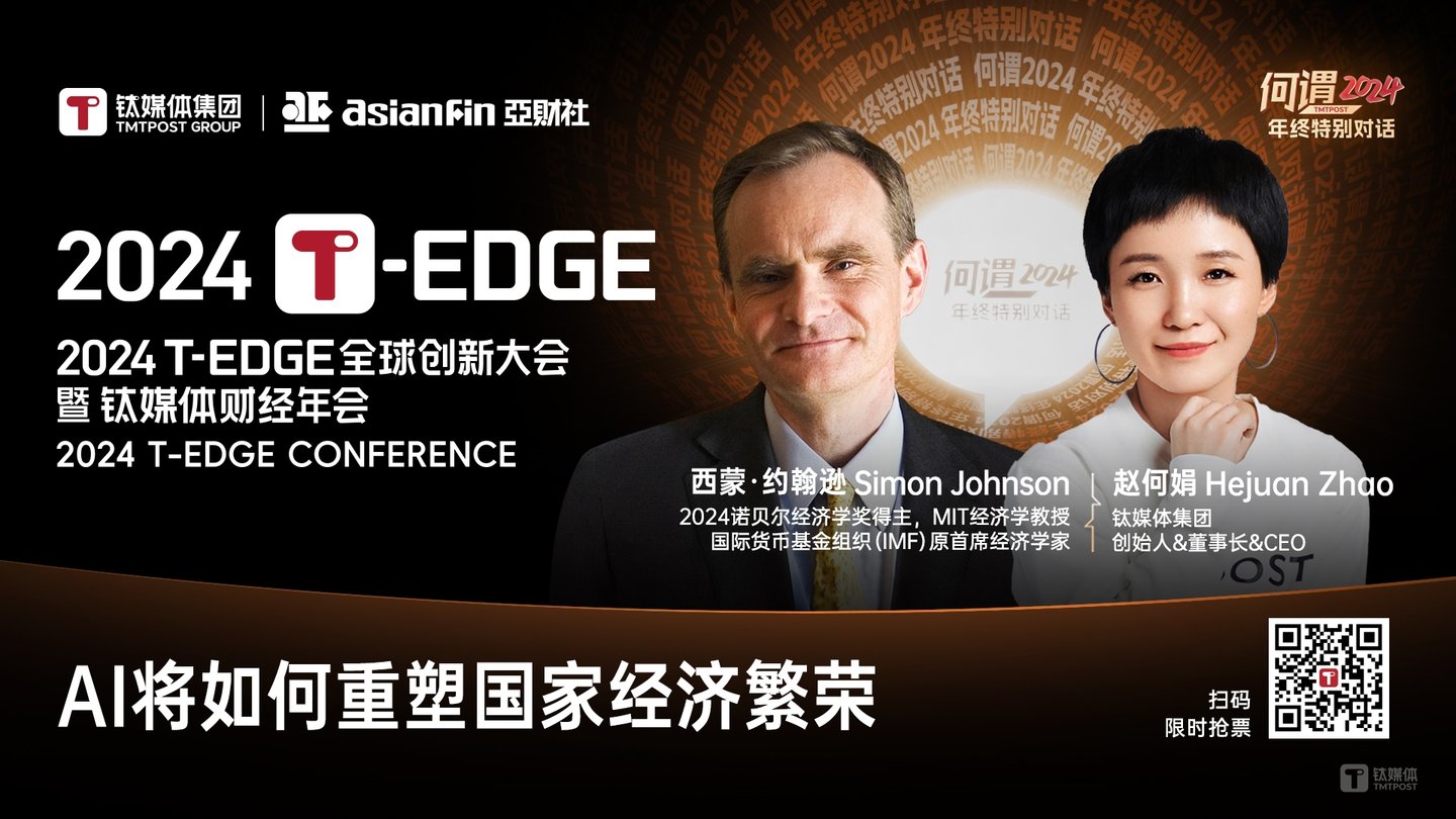 未来,AI将如何重塑国家经济繁荣?我们是否准备好建立更包容的制度,确保技术成果被普遍分享,而非被精英垄断?Simon教授将为2024T-EDGE带来重磅闭幕演讲,钛媒体创始人赵何娟也将带着更多问题与Simon教授进行对话。也欢迎你给我们留言留下你感兴趣想问的问题,可能这个问题就会让你被Q到提给Simon教授。