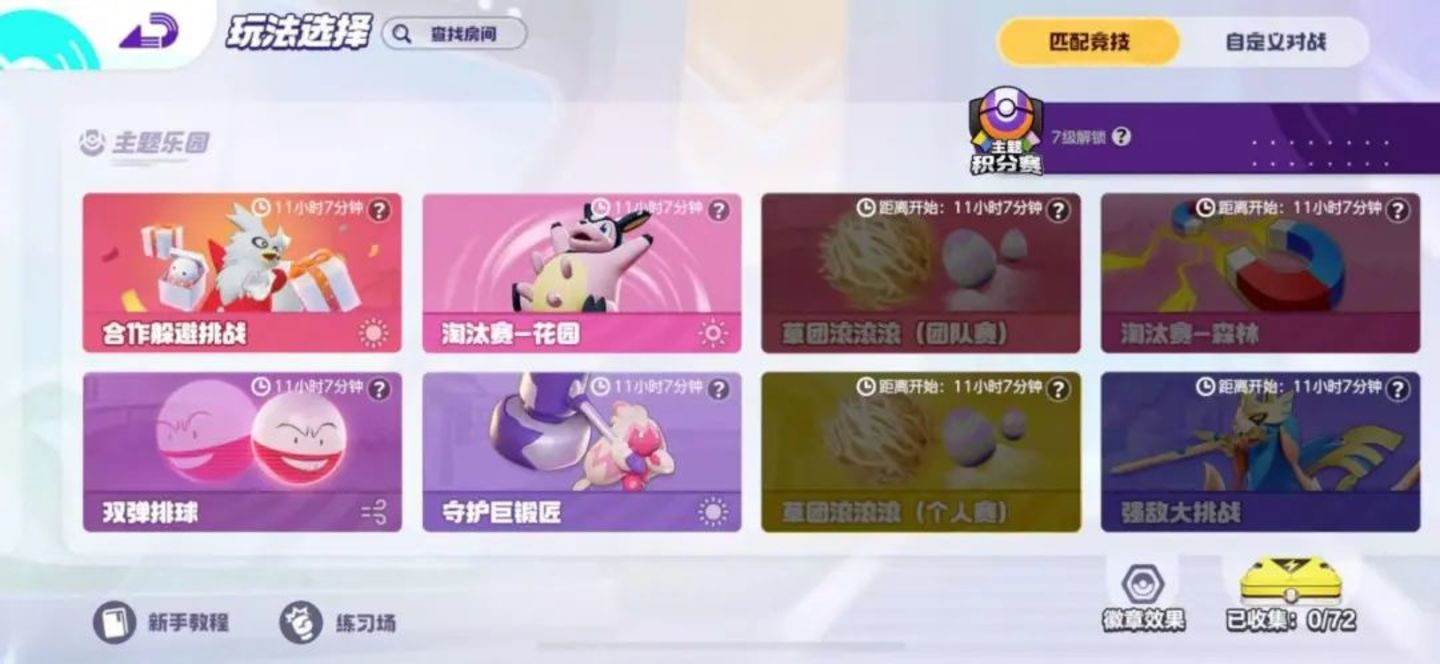 与此同时,国服《宝可梦大集结》还在非排位赛的主题乐园中引入了14种国际服没有的新玩法,其中包括了“守护巨缎匠”等PVE模式,当然也有“硬币抓抓乐”等单人模式。这些玩法每24个小时进行一次轮换,不会给玩家带来单调的感觉。