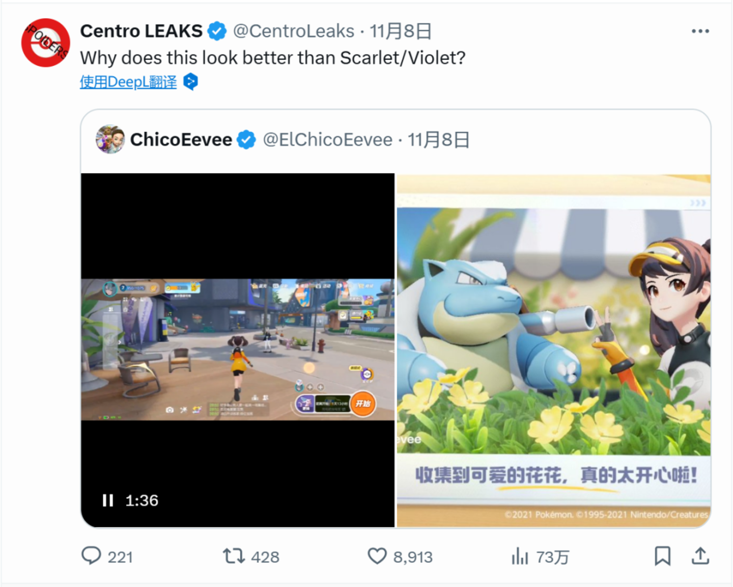 令人意外的是,国服《宝可梦大集结》中的亿奥斯岛恰恰给了宝可梦玩家们一片社交的乐园。一些中国玩家把亿奥斯岛的各种游玩和互动视频搬运到海外社交媒体。一位宝可梦领域的KOL表示:“《宝可梦大集结》中国版远胜过全球版本,它看起来甚至比《宝可梦:朱紫》还要好。”