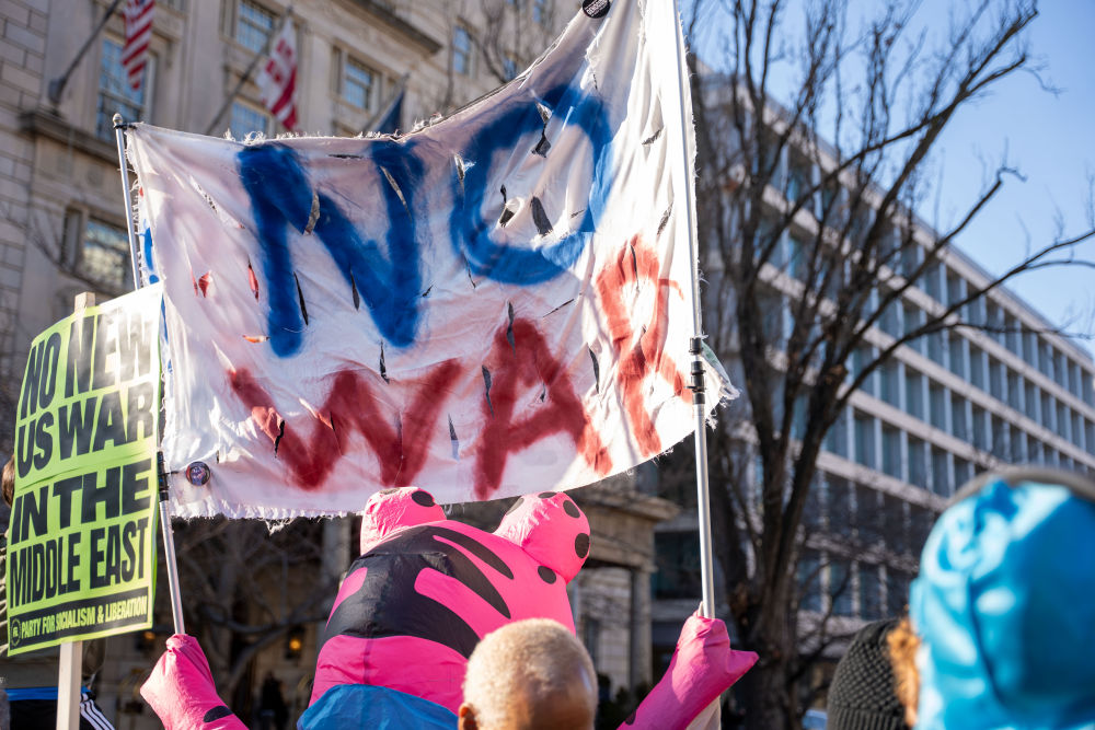 美国纽约、华盛顿、旧金山、洛杉矶、芝加哥等50多个城市的民众7日举行游行集会,谴责美国对伊朗动武,呼吁特朗普政府停止对中东的军事干涉。
