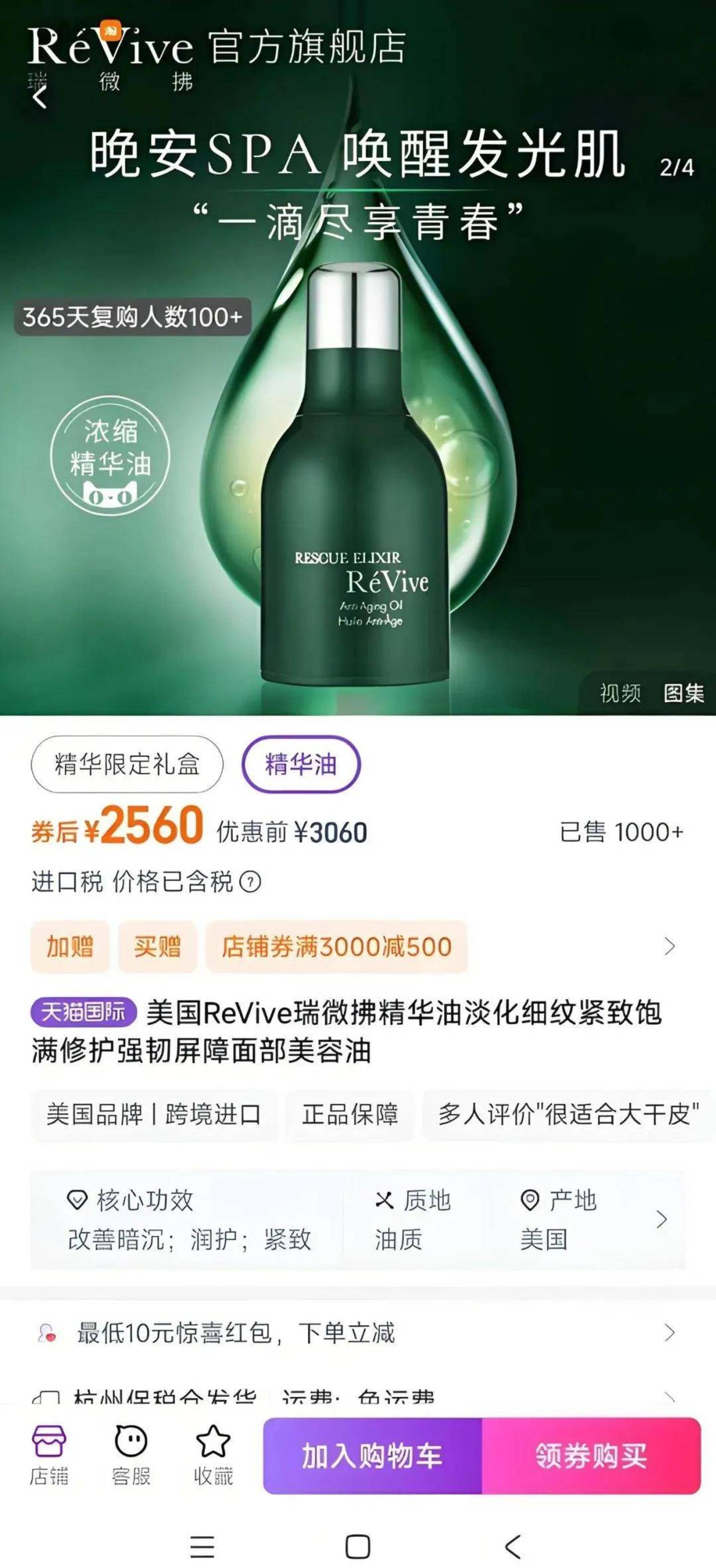 其核心单品RéVive浓缩青春精华油,俗称“一夜回春油”,在小红书等社交平台拥有较高讨论度。目前天猫旗舰店券后售价2560元/瓶。