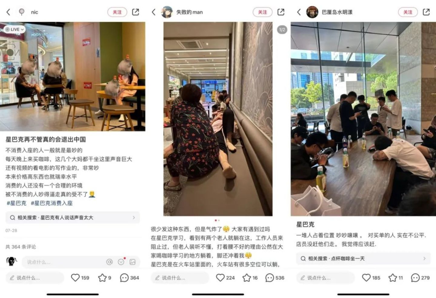 在社交媒体上,许多网友都在表达如今星巴克的空间体验感越来越差,不消费占座、吵闹无序等等一系列降低体验价值的门店管理问题,让星巴克的“第三空间”概念饱受质疑。