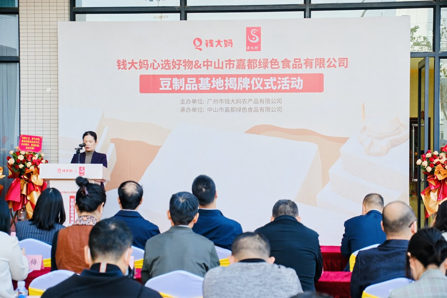 12月13日,钱大妈集团与中山市嘉都绿色食品有限公司在中山市举行钱大妈&素礼坊豆制品标准生产示范基地揭牌仪式。