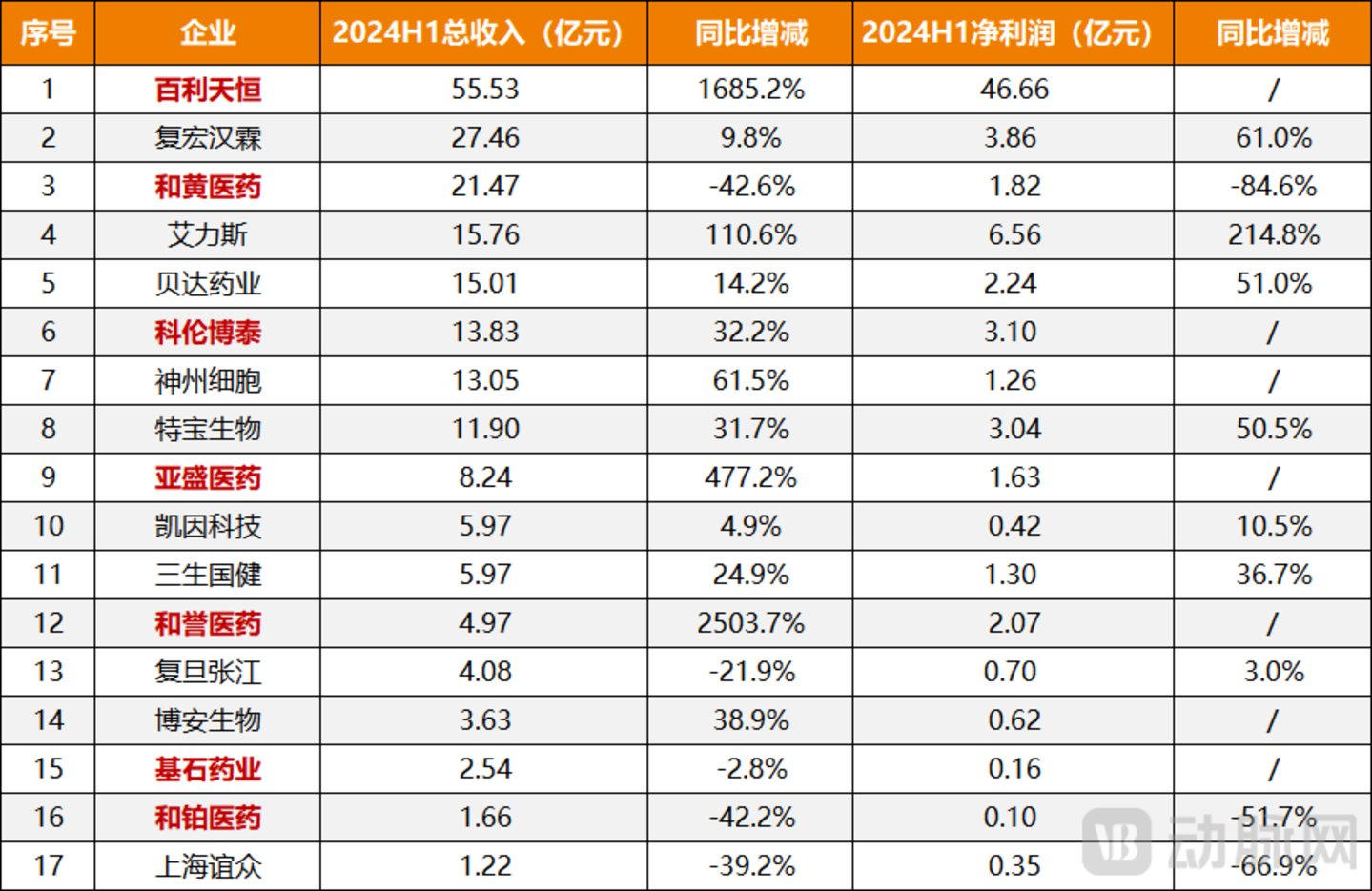 图2.2024H1实现盈利的17家biotech(数据来源:公开资料)