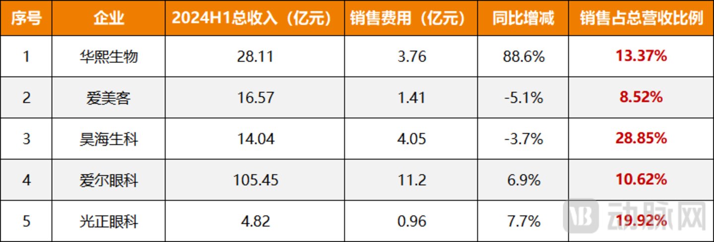 图5.部分消费医疗企业销售费用及占比(数据来源:公开资料)