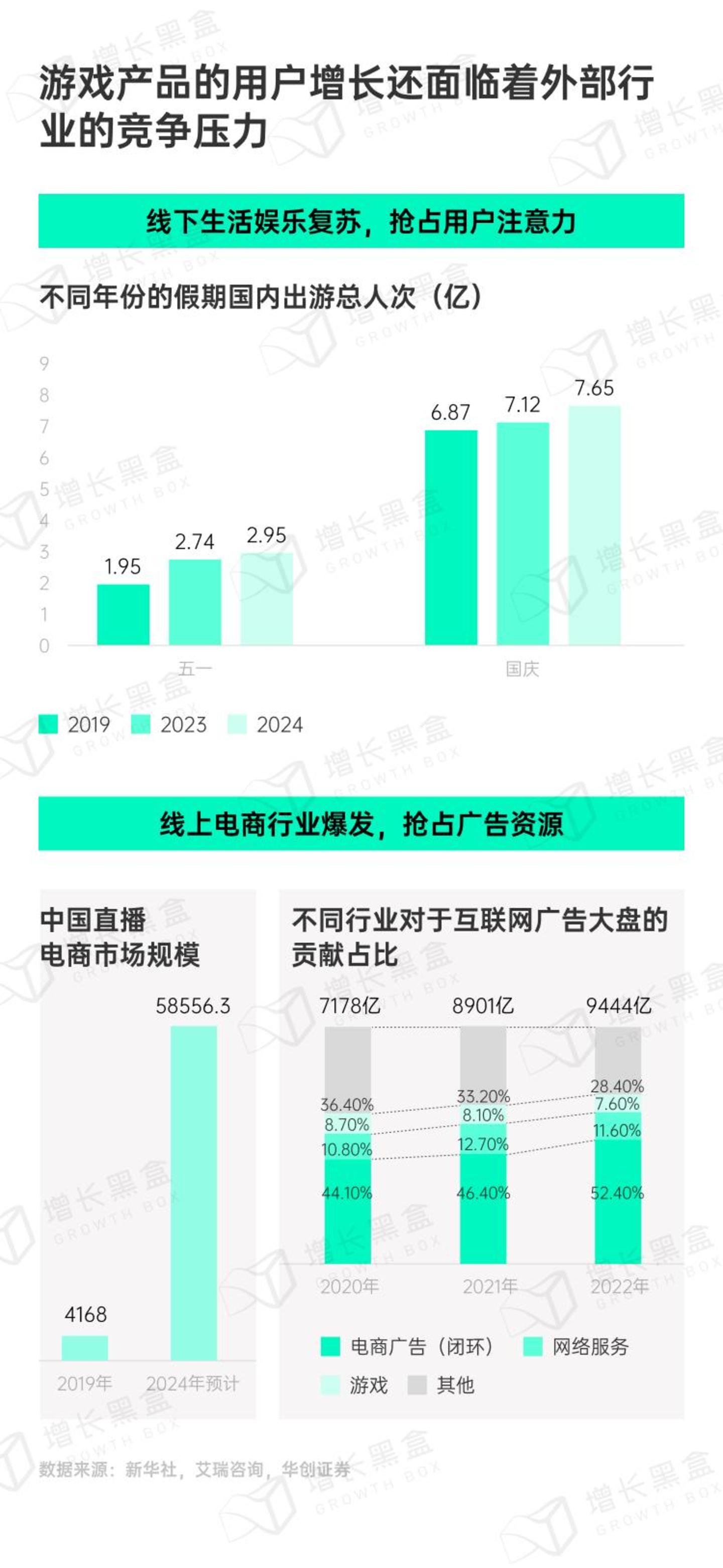 用户在游戏上的注意力和开销,也在被其它行业挤占。