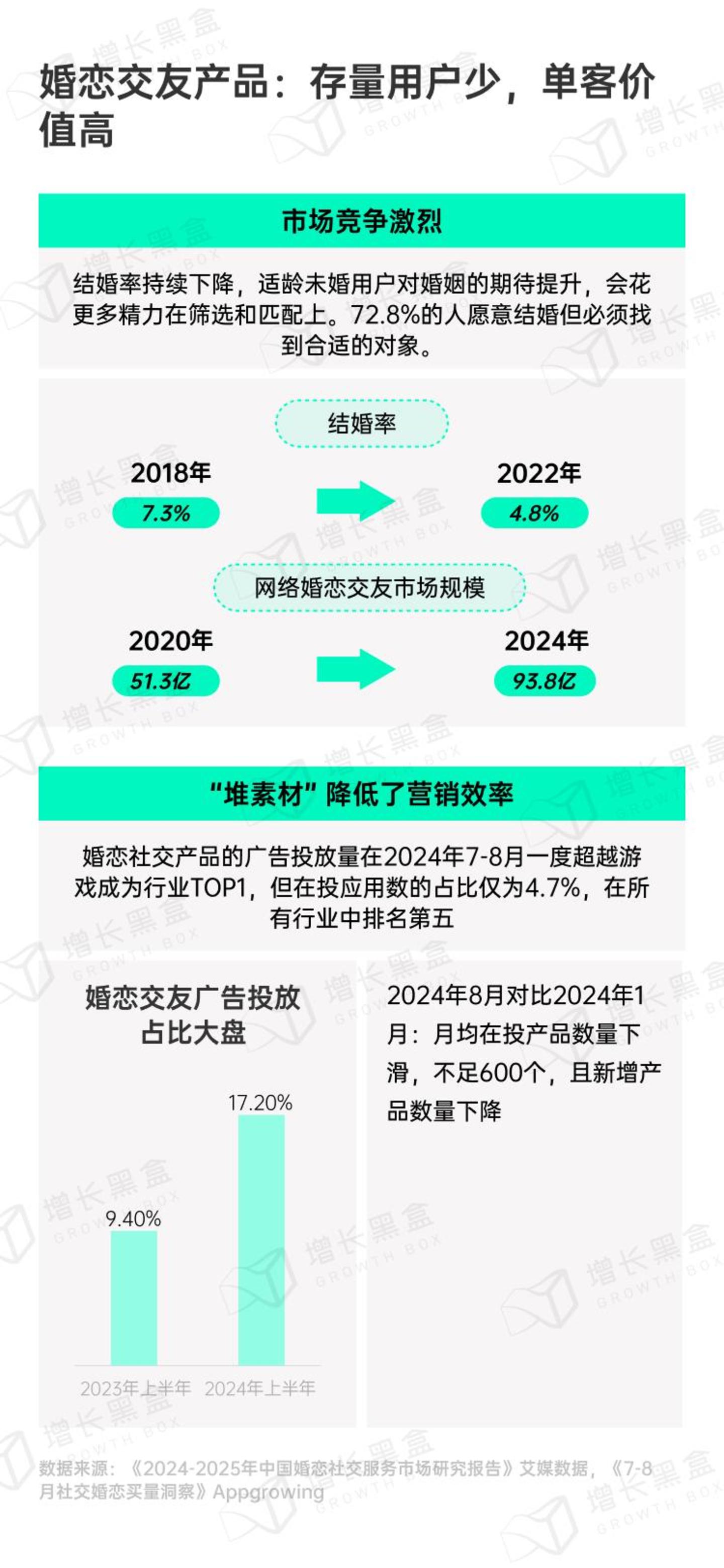 基于政策合规和舆论环境的压力,下沉市场的玩家将逐步退出,取而代之的是更注重社交结果交付的企业。这意味着婚恋产品需要在用户身份认证等基础设施上投入更多资源、构建更强的运营能力。这种趋势也代表了行业正从简单的流量变现模式,向更重视用户价值和服务质量的方向转变。