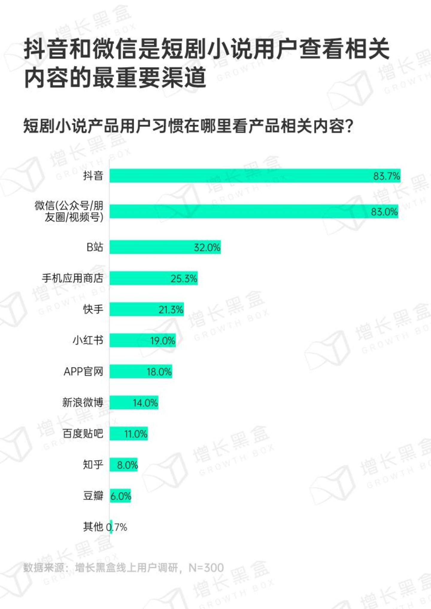 同样,考虑到短剧小说产品也常常采用IAA模式变现,我们同样聚焦高时长的用户,分析了他们的精准信息渠道选择。其中抖音平台整体、微信公众号是最主要的渠道。