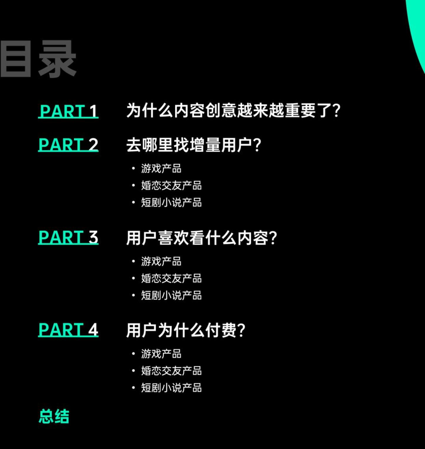 通过上述行业的观察和用户行为的洞察,我们认为“创意驱动增长”的理念对于游戏、婚恋交友、短剧小说等互联网产品会产生很大的加成作用,使得厂商们有机会在激烈的竞争中挖掘到新增量。