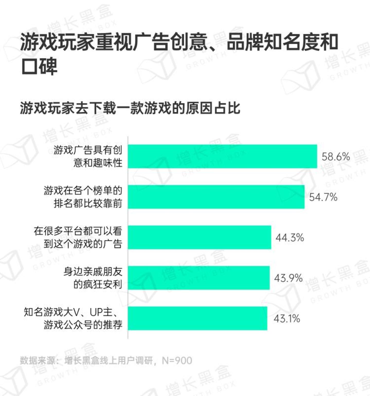 我们的调研同样显示:“品效协同”在游戏和网络服务产品营销中非常重要。过度追求效果,并不是用户所期待的。对于下载app的用户来说,有超过6成属于长期构建的品牌类因素,不到4成才是即时产生刺激的效果类因素[11]。