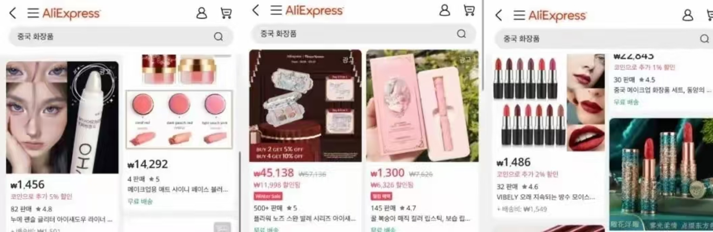 以在速卖通和Temu为例,国产化妆品的售价通常低于6美元,而韩国本土品牌的同类产品售价超过22美元,作为本土品牌的平替版,中国化妆品开始受到欢迎。